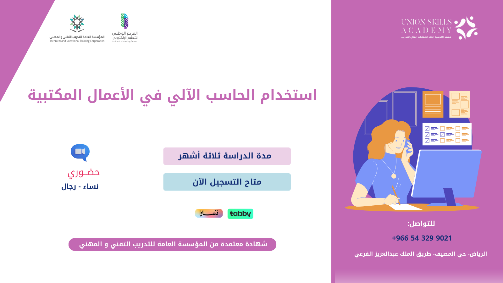 حضوري مسائيتهدف هذه الدورة التأهيلية إلى دعم المتدرب بالمعلومات واكتساب المهارات المتخصصة في استخدام الحاسب